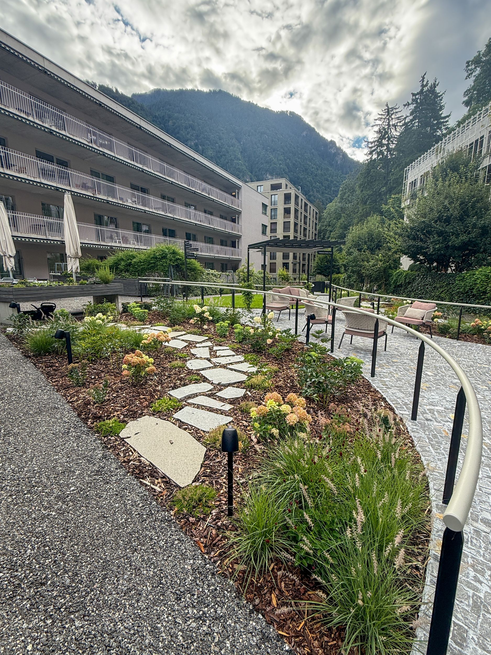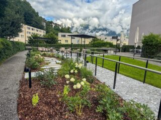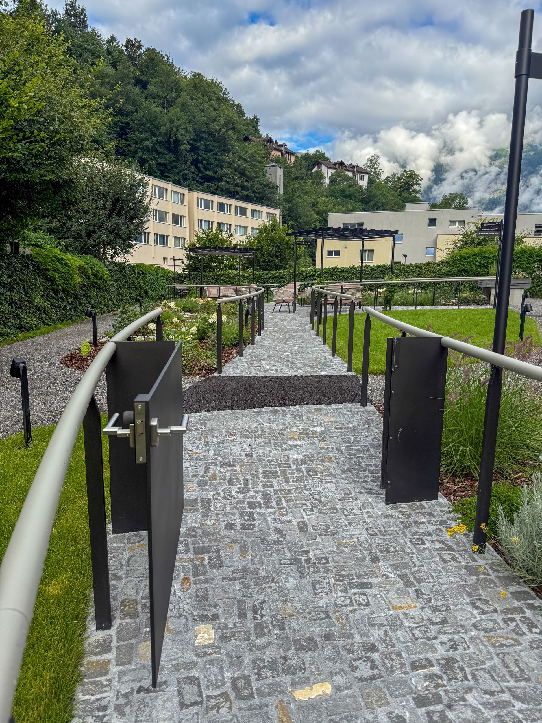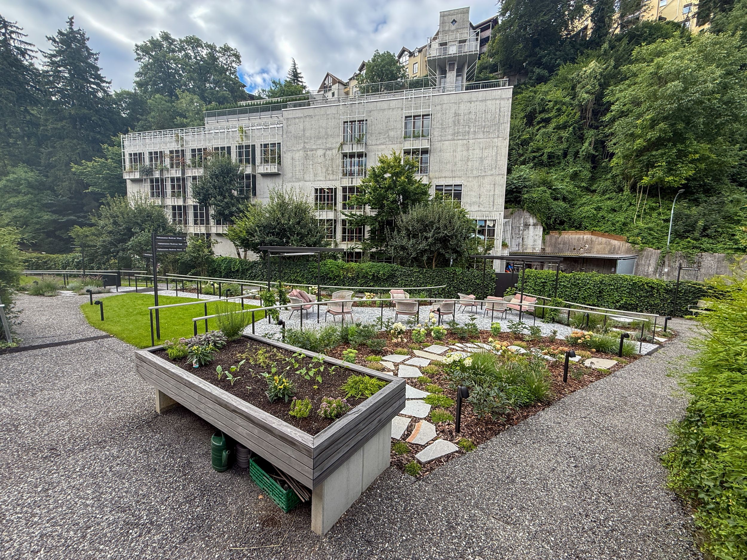 Die Planung entstand in enger Zusammenarbeit mit den Verantwortlichen der Alterssiedlung Bodmer. Das Ganze musste zudem auf einem begrenzten Raum umgesetzt werden, da die Gebäude in der direkten Umgebung die Grenzen vorgeben.