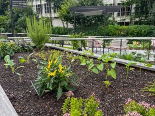 Ein Highlight im neuen Garten der Alterssiedlung Bodmer ist der Duft- und Naschgarten. Dort wurden verschiedene Obstgehölze und Gewächse gepflanzt, die von Frühling bis Herbst den Garten bereichern. Dies beginnt früh im Jahr mit bunten Blüten in vielen Farben, die gleichzeitig einen intensiven Duft einbringen. Während der Erntezeit sorgen viele heimischen Obstsorten, die Erinnerungen an die Kindheit wecken, für Aktivität im Garten. Der Duft- und Naschgarten ist Teil des Gesamtkonzepts, mit dem der Demenzgarten alle Sinne ansprechen und aktivieren soll.