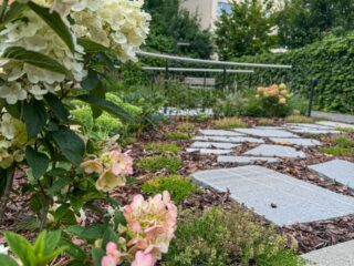 Im Mittelpunkt des Demenzgartens steht eine offene Piazza. Mehrere Wege führen zu diesem offenen Platz, der mit zahlreichen Stühlen und Bänken bestückt ist. Dadurch entstand ein Treffpunkt in angenehmer Atmosphäre, der für die lockere Begegnung konzipiert ist. Gleichzeitig haben alle Bewohner die Option, sich zurückzuziehen und abseits die Ruhe im Demenzgarten Bodmer zu geniessen.