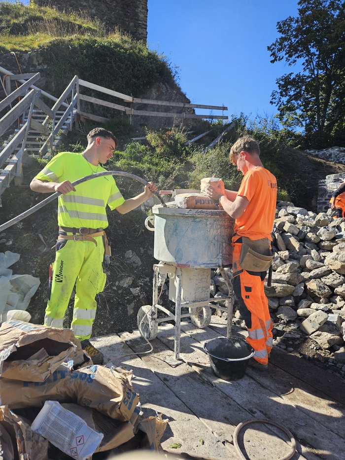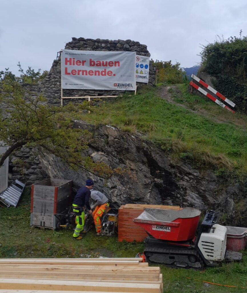 Unsere Burg-Spezialisten der Zindel + Co. haben per dato schon einige wichtige Arbeiten an der Burg Freudenberg in Bad Ragaz ausgeführt. Unter fachmännischer Anleitung und Begleitung dürfen jetzt die Lernenden verschiedene Arbeiten umsetzen und Erfahrungen sammeln. Auf der To-Do-Liste steht u.a. das Erstellen der Begegnungsflächen (Bodenbeläge, Vorplätze), Treppenstufen instand setzen, Zugangsweg und Feuerstelle erstellen.