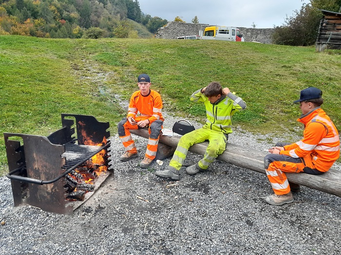 Die Berufsbildner Andreas, Chrigu und Werner lassen die Projektwoche nochmals Revue passieren und erzählen den Anwesenden einiges zu der Planung, den Arbeiten und auch mal ein Schmankerl aus dem Lagerleben. Und selbstverständlich kommen auch die Lernenden zu Wort und erzählen aus ihrer Sicht.